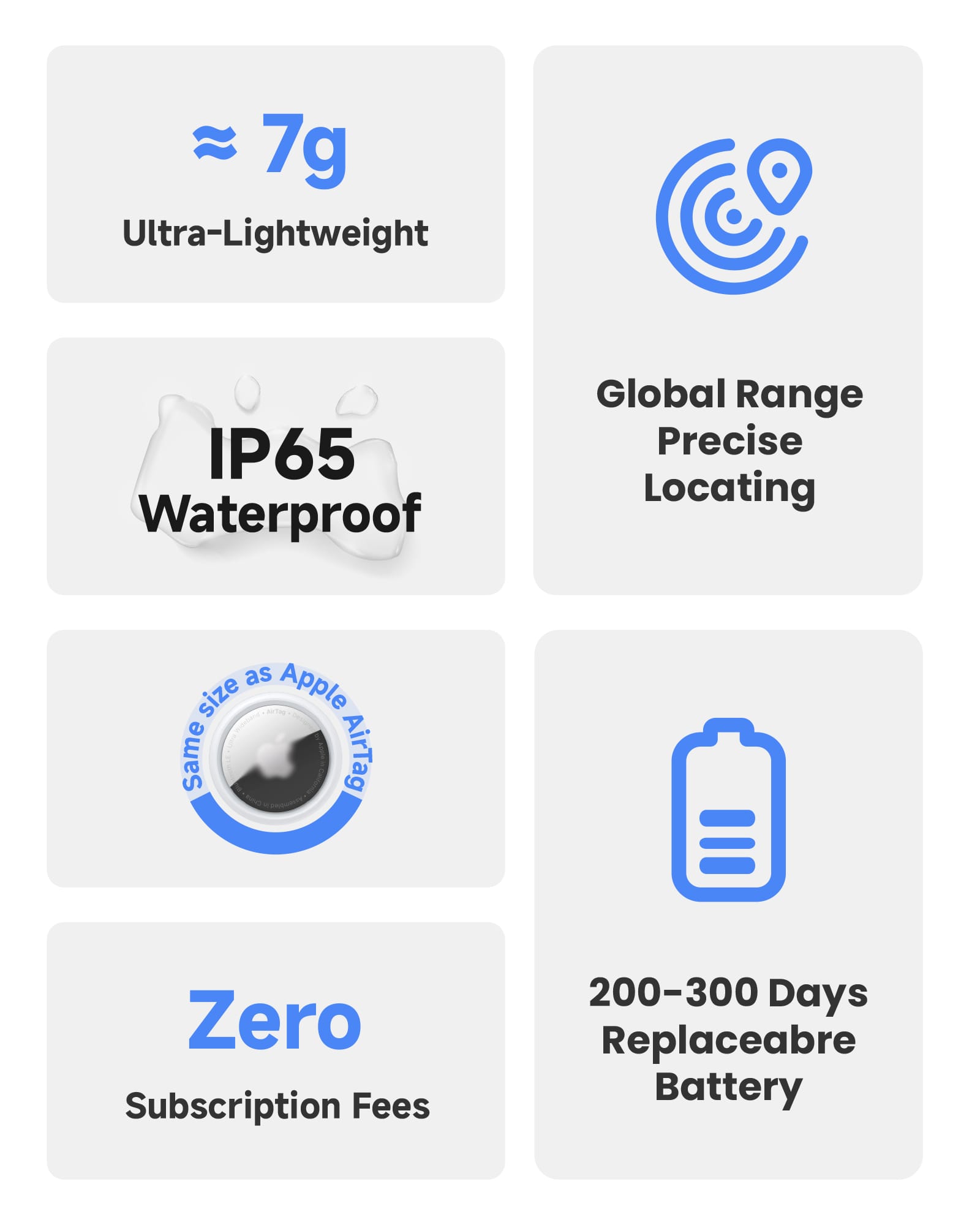 - Compatibility: Android (Google Find My) & iOS (Apple Find My)